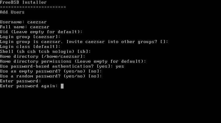 В качестве оболочки вы можете выбрать Bourne shell (sh) или tcsh. Когда завершите, просто наберите «Yes»: