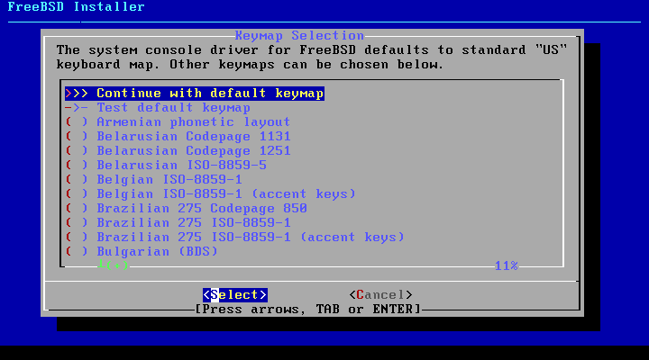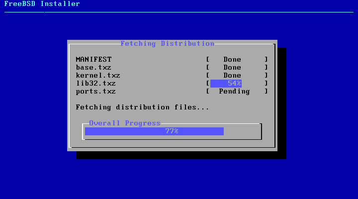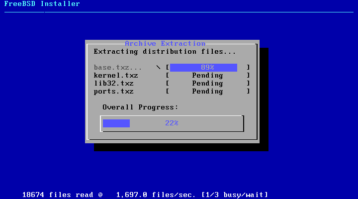 Дальше будет запущена установка FreeBSD 11 с флешки или другого носителя, в зависимости от скорости работы вашего компьютера и жесткого диска, установка может занять от 10 до 30 минут.