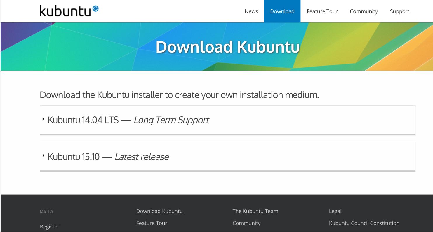 Скачать установочный образ Kubuntu можно на странице загрузки проекта . Здесь есть два варианта для загрузки — Kubuntu 14.04 LTS и последняя версия Kubuntu 15.10: