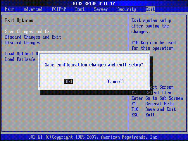 Когда закончите перейдите на вкладку Exit выберите пункт Save Changes and Exit. Название этого пункта тоже может немного отличаться в зависимости от версии BIOS и производителя.