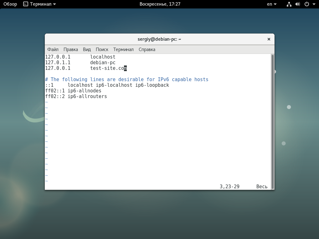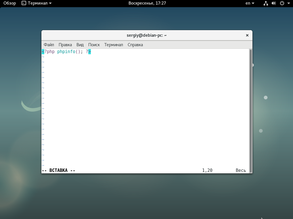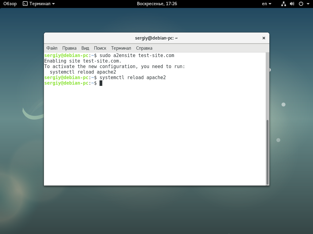Уже прошли те времена, когда для того чтобы подключить PHP к Apache нужно было пересмотреть кучу конфигурационных файлов, теперь установка LAMP Debian 9 выполняется достаточно просто. Если уже сейчас запустить Apache, и ввести адрес localhost, то все будет работать. Но давайте сначала добавим домен к нашему сайту. На локальной машине это тоже полезно. Сначала создадим папку для сайта: