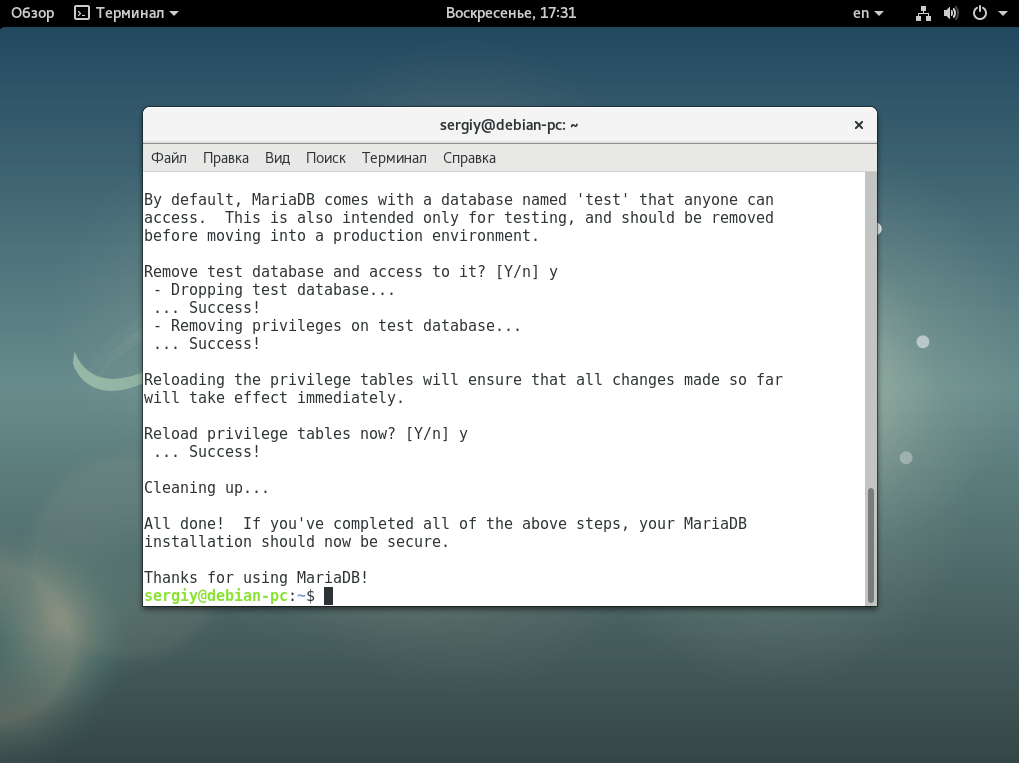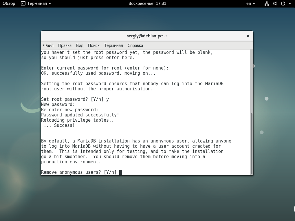 Как я уже говорил, в качестве основной базы данных мы будем использовать mariadb. Чтобы начать ее настройку выполните: