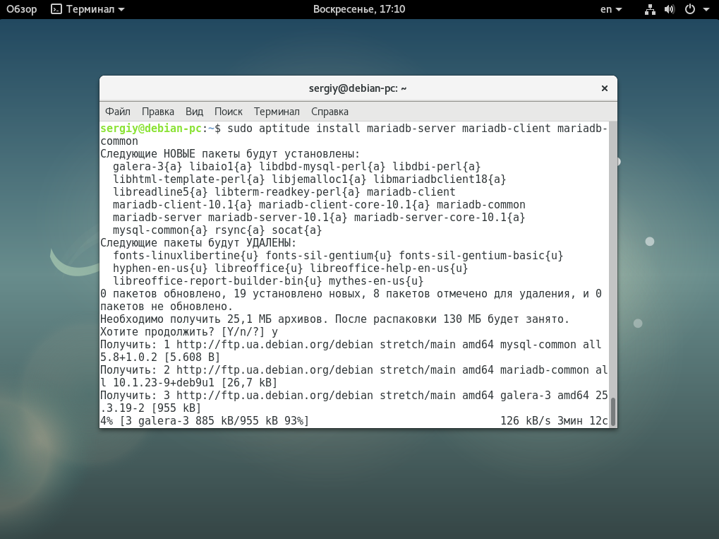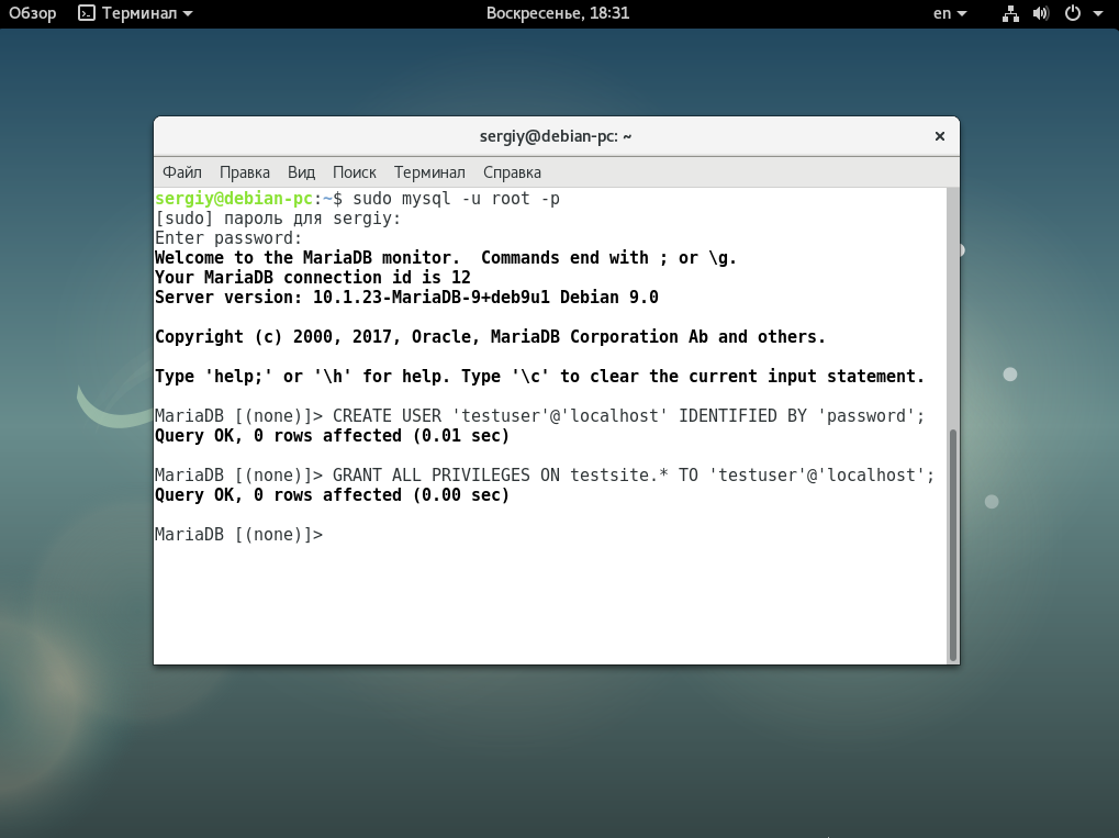 Перед тем как перейти к настройке всего этого, нужно установить систему управления базами данных. Вы можете использовать MySQL либо же версию, разрабатываемую сообществом — MariaDB. Для установки MariaDB выполните: