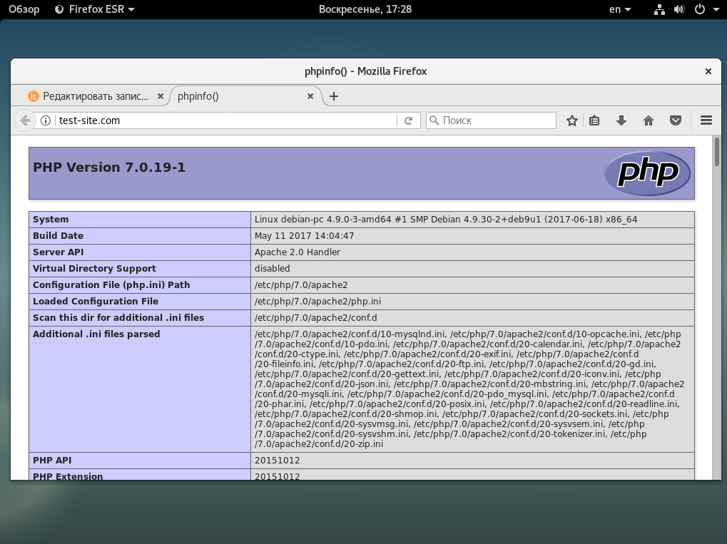 Чтобы проверить как все работает создайте файл index.php со следующим содержимым в папке /var/www/test-site/: