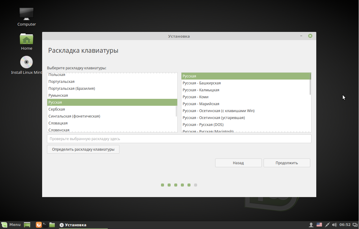 Выберите раскладку клавиатуры: