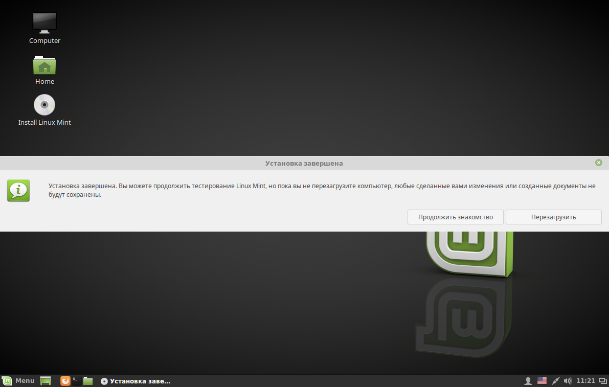 Выполните двойной клик по значку Install Linux Mint на рабочем столе: