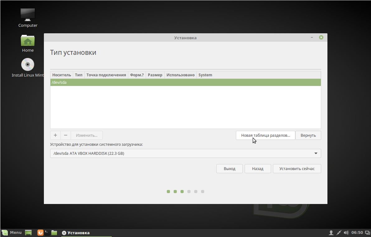 Шаг 11. Новая таблица разделов