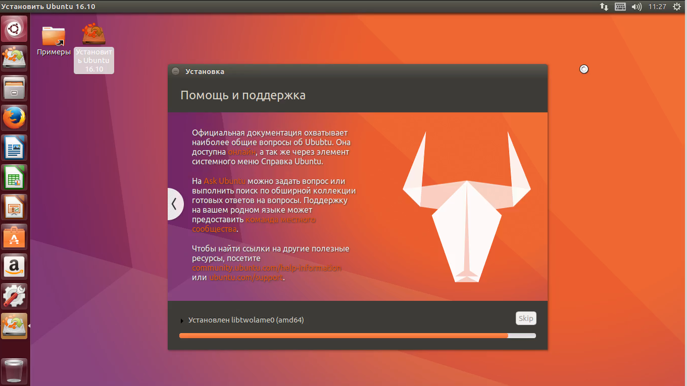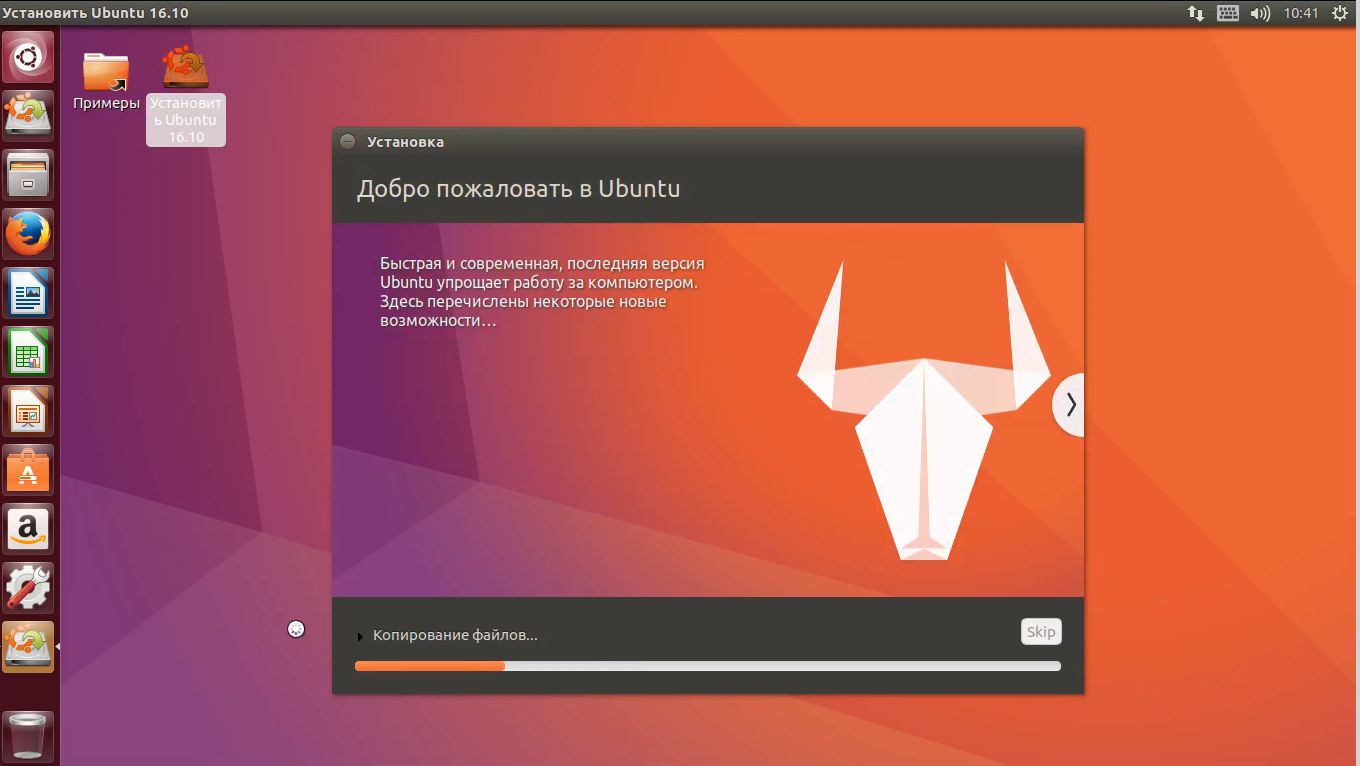 Видео с процессом установки Ubuntu 16.10: