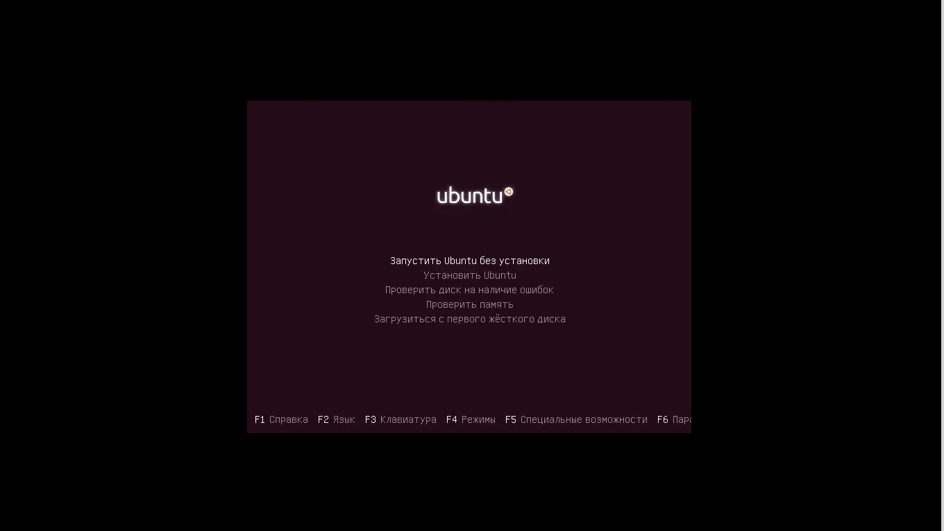 Дальше в меню, выберите загрузка Ubuntu без установки: