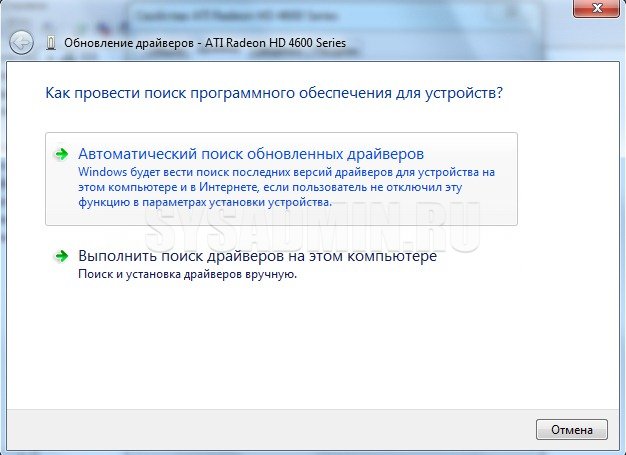 Здесь выбираем “Автоматический поиск обновленных драйверов”. У меня драйвера нашлись без проблем. Если таким способом обновить драйвера не получается, то заходим на официальный сайт производителя, находим вашу модель видеокарты, скачиваем последнюю (или предпоследнюю) версию драйвера и обновляемся вручную. Лучше скачивать предпоследние драйвера, потому что последние могут быть сырыми (недоработанными).