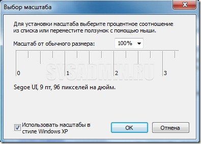 8) Если элементы интерфейса на экране выглядят маленькими, то в меню, в которое мы зашли в 7- пункте, выбираем “Другой размер шрифта (точек на дюйм)”. Появится окошко выбора масштаба: