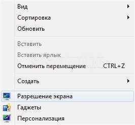 1) Заходим в контекстное меню рабочего стола, Разрешение экрана (в Windows 7).