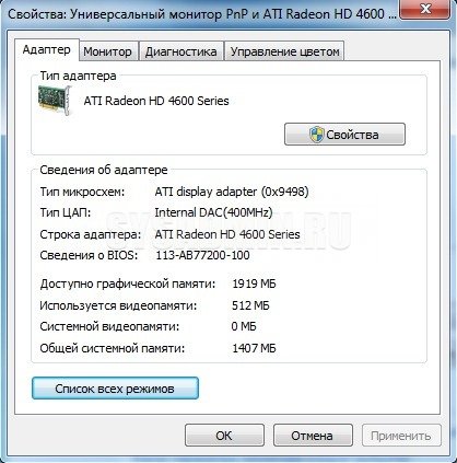 3) Появятся характеристики вашего видеоадаптера (видеокарты).