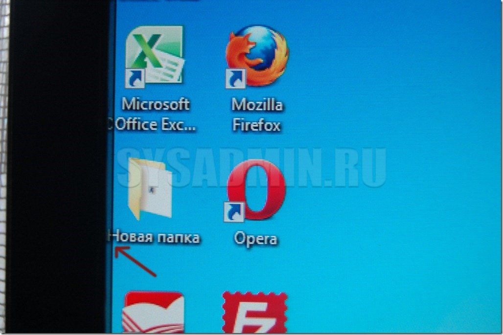 Настраивая роутер, столкнулся со следующей проблемой – изображение монитора было смещено на пару миллиметров влево. И курсор также “уплывал” левее, не задерживаясь о грань монитора. Причем это было как в программах, так и на рабочем столе. А справа образовалась черная полоска шириной в те же пару миллиметров. Да что тут рассказывать, смотрите сами (правый нижний угол и вылезание папки за край):