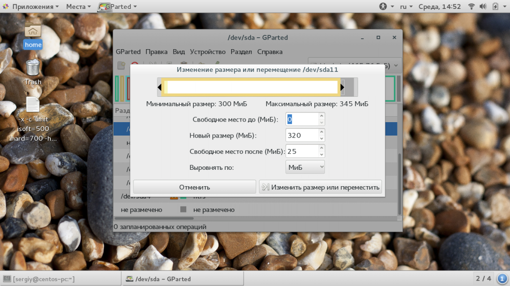 Далее, увеличение размера XFS осуществляется в два этапа. Но в увеличении размера онлайн есть одно но, вам нужно увеличить размер раздела в таблице разделов, а сделать это без размонтирования можно только в LVM. В других же конфигурациях придется все же размонтировать. Сначала измените размер раздела, например, с помощью Gparted: