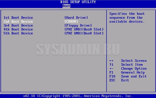 Теперь в качестве основного загрузочного устройства выберите свой дисковод (в случае использования загрузочного диска) или порт USB (при использовании загрузочной флешки).
