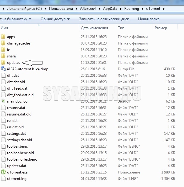 - Для начала закрываем utorrent.exe, а после этого переходим в папку %AppData%uTorrent, там мы увидим примерно следующее: