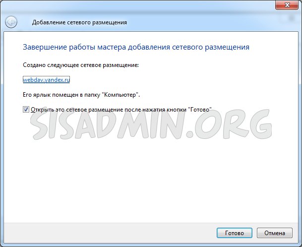 Подключаем Яндекс.Диск как сетевое размещение
