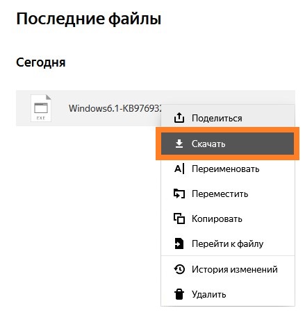 - Откроется страница с содержимым Яндекс Диска — там будет ранее сохраненный файл. Нажимаем на нем правой кнопкой мыши, и выбираем «Скачать«. После этого, начнется скачивание необходимого файла.