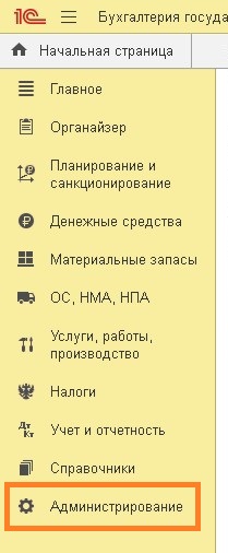 - Выбираем пункт меню «Администрирование«.