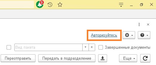 2. В правом верхнем углу программы 1С, нажимаем на кнопку «Авторизуйтесь».
