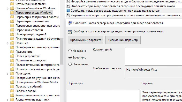 Если задать 0, это запретит Windows кэшировать учетные данные пользователей. В этом случае при недоступности домена, при входе пользователя появится ошибка “Отсутствуют серверы, которые могли бы обработать запрос на вход в сеть”.