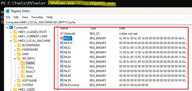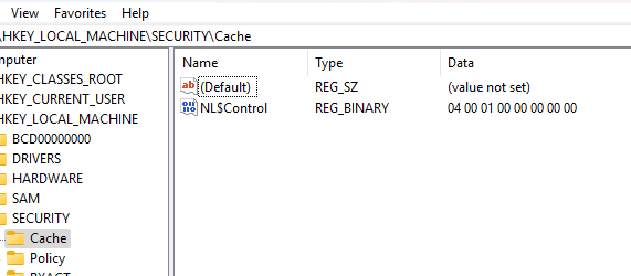 Сохраненные пароли хранятся в ветке реестра HKEY_LOCAL_MACHINESecurityCache (файл %systemroot%System32configSECURITY ). Каждый сохранённый хэш содержится в Reg_Binary параметре NL$x (где x – индекс кэшированных данных).