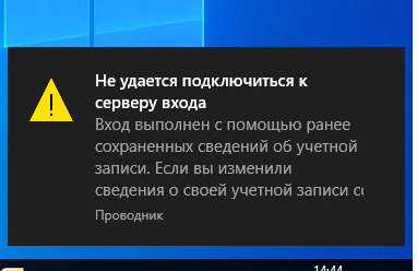 Не удается подключиться к серверу входа (контроллеру домена). Вход выполнен с помощью ранее сохраненных сведений об учетной записи.