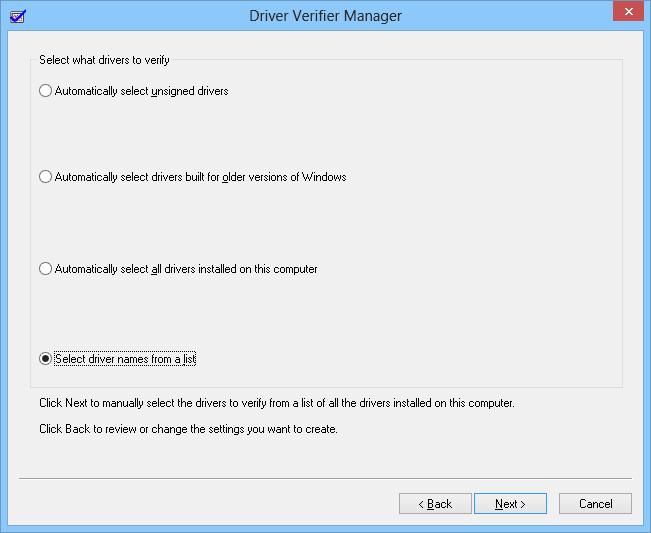 Утилита Driver Verifier входит в состав всех версий Windows, начиная с Windows XP, и позволяет выполнять проверку драйверов, выявлять проблемные драйвера, являющиеся причиной синего экрана смерти (BSOD — Blue Screen of Death) и записывать подробную информацию о проблемном драйвере в дамп памяти для дальнейшего анализа. Утилита подвергает проверяемые драйвера различным «стресс-тестам», имитируя различные экстремальные условия: нехватка памяти, контроль I/O, IRQL, взаимные блокировки, проверки DMA, IRP и пр. Т.е. имитируются ситуации, которые на продуктивных системах случаются нечасто, и отслеживается поведения драйвера в них. Цель работы утилиты – выявить ситуации, при которых драйвер может привести к аварийному завершению работы системы с BSOD.