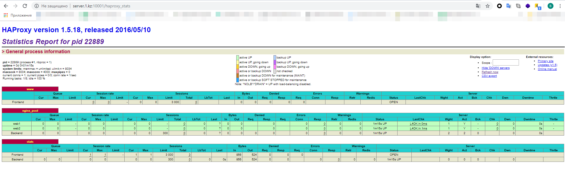 Чтобы посмотреть отчеты по работе HAProxy, нужно перейти по ссылке: