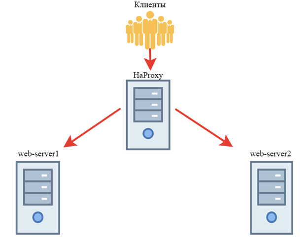 HAProxy устанавливается на отдельный сервер, который принимает клиентские запросы и перенаправлять их на веб-сервера Nginx. Ниже представлена общая архитектура системы.
