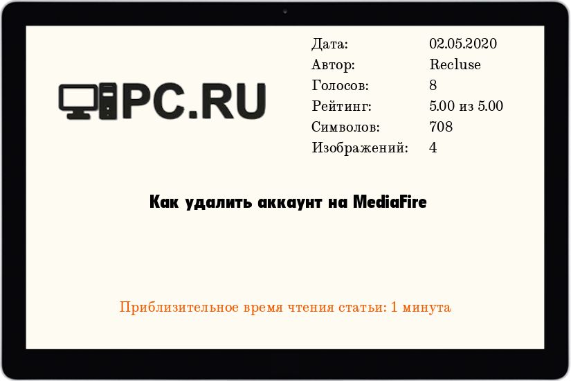 Небольшая инструкция по удалению учетной записи на файлообменном сервисе MediaFire.