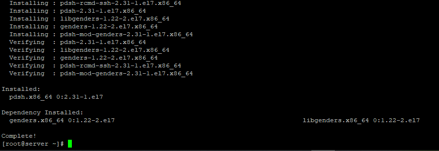 yum install pdsh pdsh-mod-genders -y — устанавливаем pdsh и модуль genders для него.