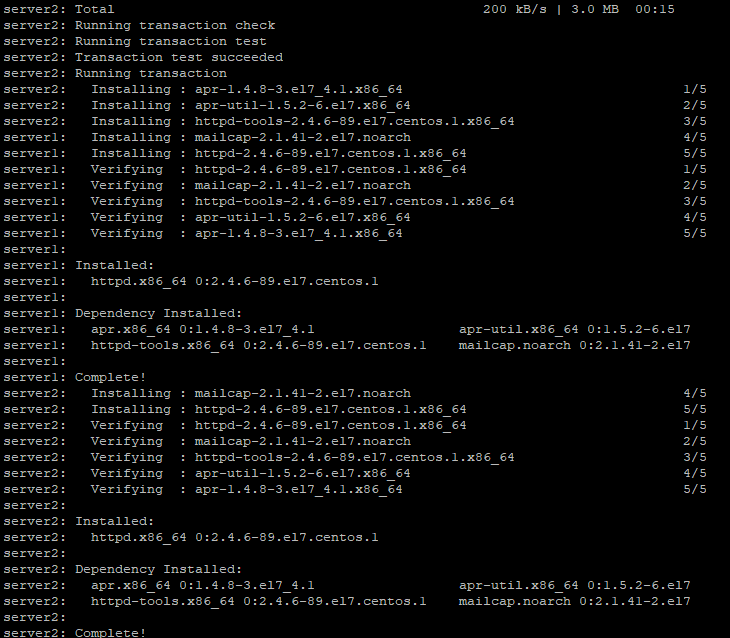 pdsh -w server[1,2] 'yum install httpd -y' – установка apache на оба сервера