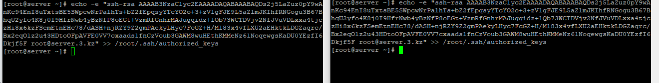 echo -e "ваш ключ с файла /root/.ssh/id_rsa.pub" >> /root/.ssh/authorized_keys