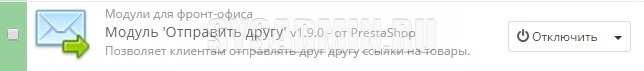 - Потом необходимо найти модуль под заглавием «Модуль Выслать другу», с этой целью можно пользоваться поиском по модулям. После того, как подходящий модуль отыщет необходимо надавить клавишу «Отключить».