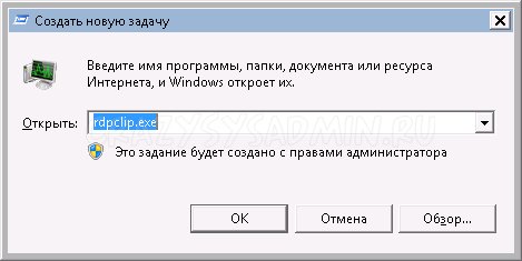 Итак, считаем что у вас все настроено верно и буквально пять минут назад буфер обмена работал, а теперь перестал. Что делать? За работу буфера обмена отвечает процесс rdpclip.exe, который должен быть запущен на удаленном компьютере, т.к. именно он отвечает за нормальное функционирование буфера обмена между вашим компьютером и удаленным.