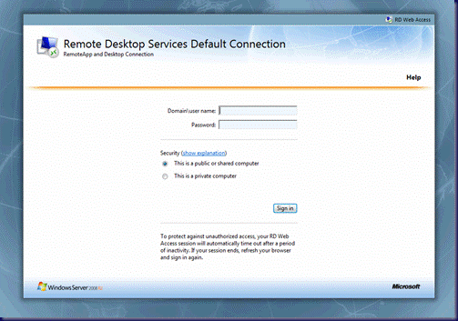 Remote Desktop Services Web Access в Windows Server 2008 R2