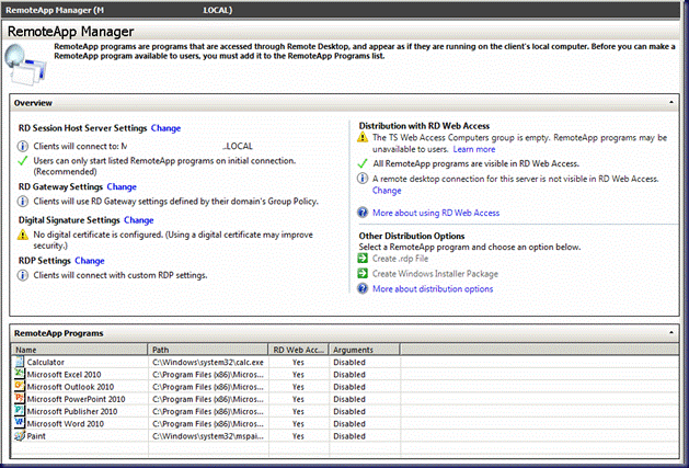 Для публикации приложений используется RemoteApp Manager на сервере Remote Desktop Services.