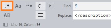- Переводим в режим работы с регулярными выражениями (см. рисунок выше).