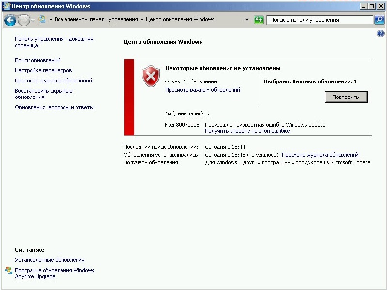 При обновлении Windows 7, есть шанс столкнутся с ошибкой 8007000E.