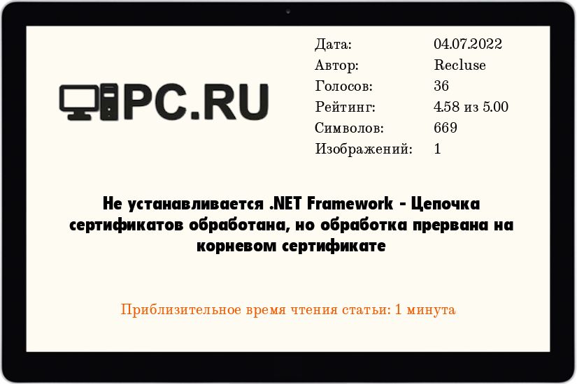 В Windows 7, при установке последних версии Microsoft .NET Framework, можно столкнуться со следующей ошибкой: