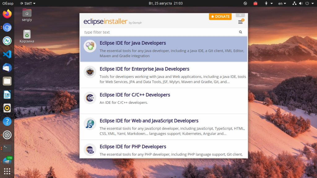 Установка Eclipse на Ubuntu