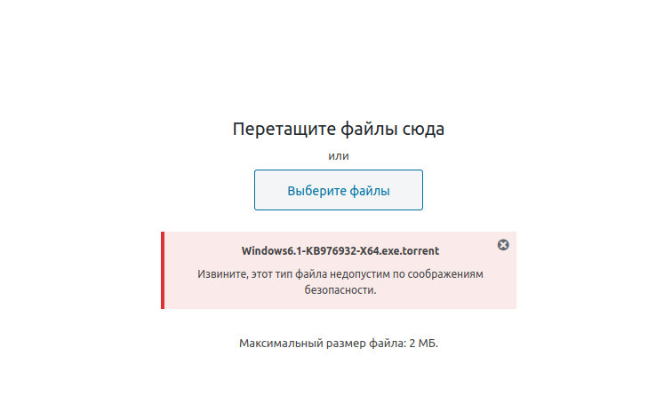 При загрузке разных файлов на сервер в WordPress можно столкнуться с данной вот ошибкой: