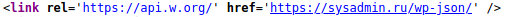 link rel=’https://api.w.org/’ href=’https://имя_веб-сайта/wp-json/’