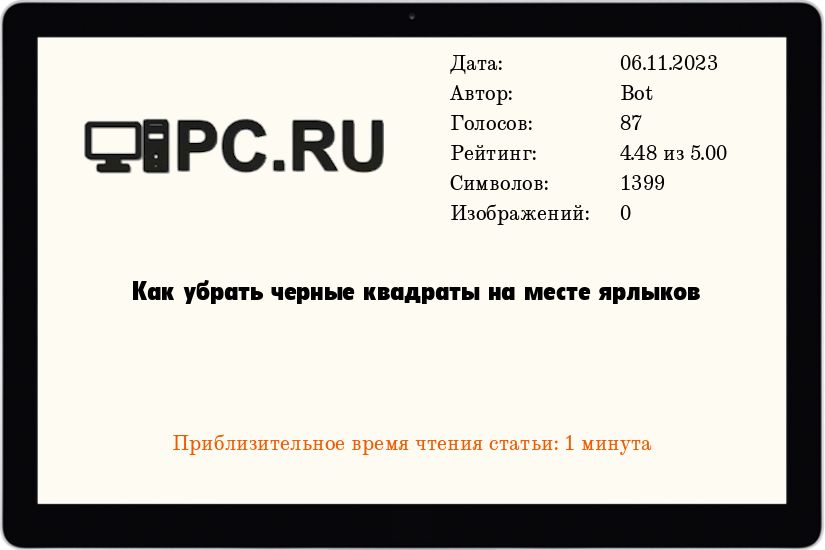 В данной статье пойдет речь о ситуации, когда вместо иконок различных приложений у ярлыков на рабочем столе отображаются черные квадраты.