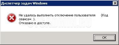 Не удалось выполнить отключение пользователя ИМЯ_ПОЛЬЗОВАТЕЛЯ (Код сеанса=НОМЕР_СЕАНСА). Отказано в доступе