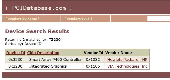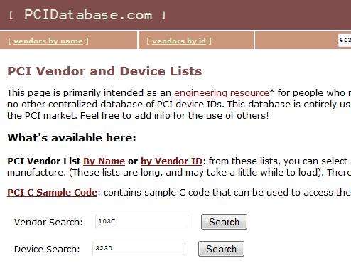 4) Определяем, что производитель устройства имеет ID 103C, а код устройства 3230