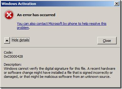 Для декодирования ошибки нам нужен второй параметр (он выделен жирным) — 0xc000428.