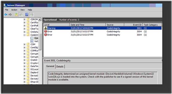 В моем случае, в журнале есть событие EventID 3001 с текстом «Code Integrity determined an unsigned kernel module DeviceHarddiskVolume1WindowsSystem32win32k.sys is loaded into the system. Check with the publisher to see if a signed version of the kernel module is available». Вот мы и нашли проблемный драйвер!